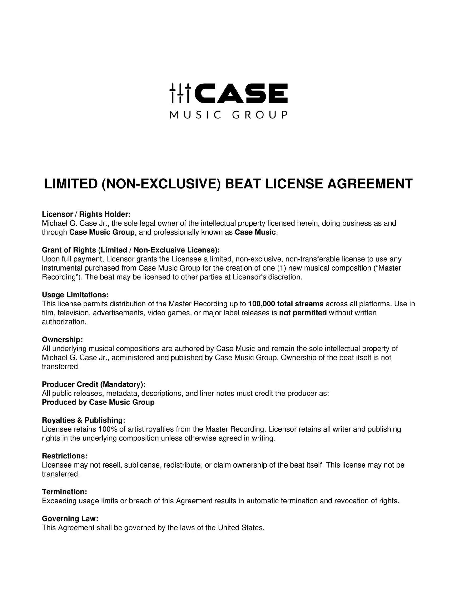 Welcome to Case Music Group (“CMG”). By accessing or using our website, beats, or services, you agree to these Terms and Conditions. Please read them carefully before using our platform.